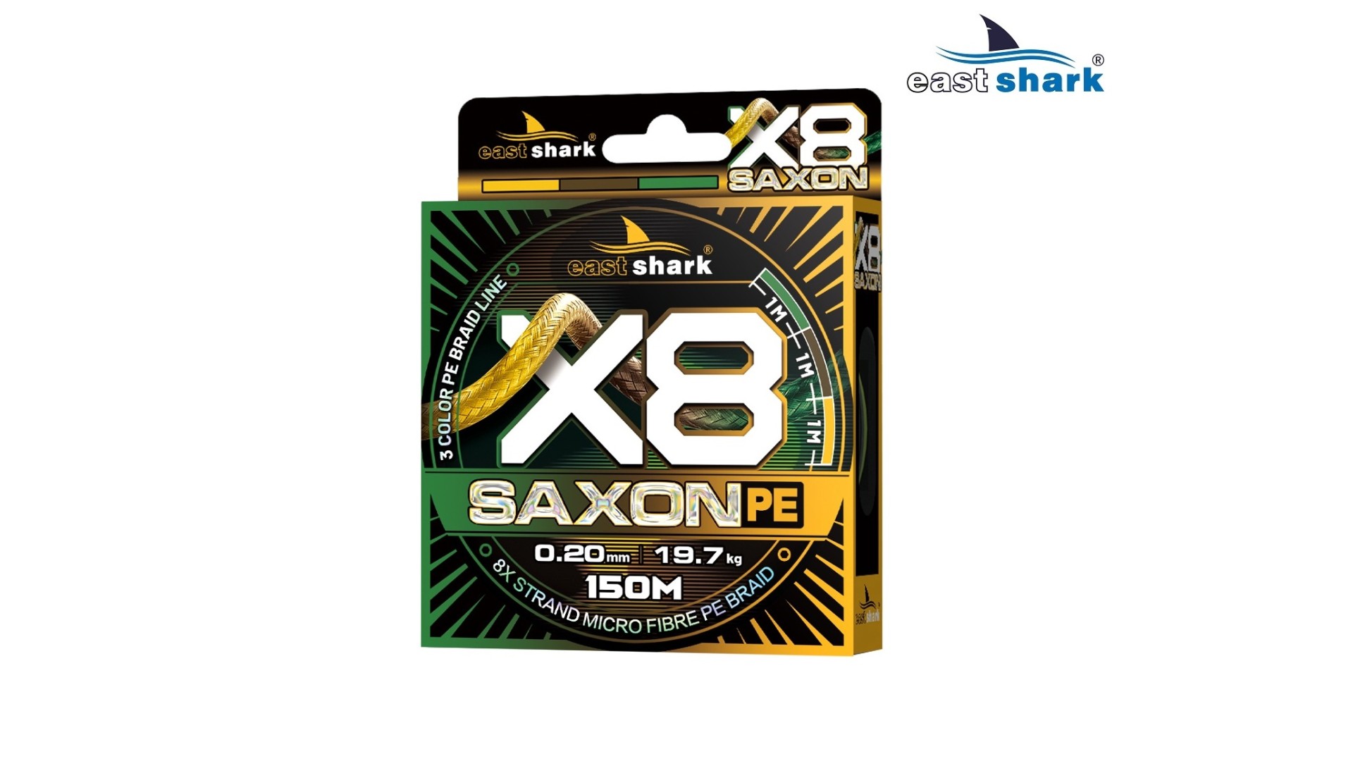 Плетеный шнур для рыбной ловли EastShark Saxon с высокой устойчивостью к абразивам и нулевым растяжением.