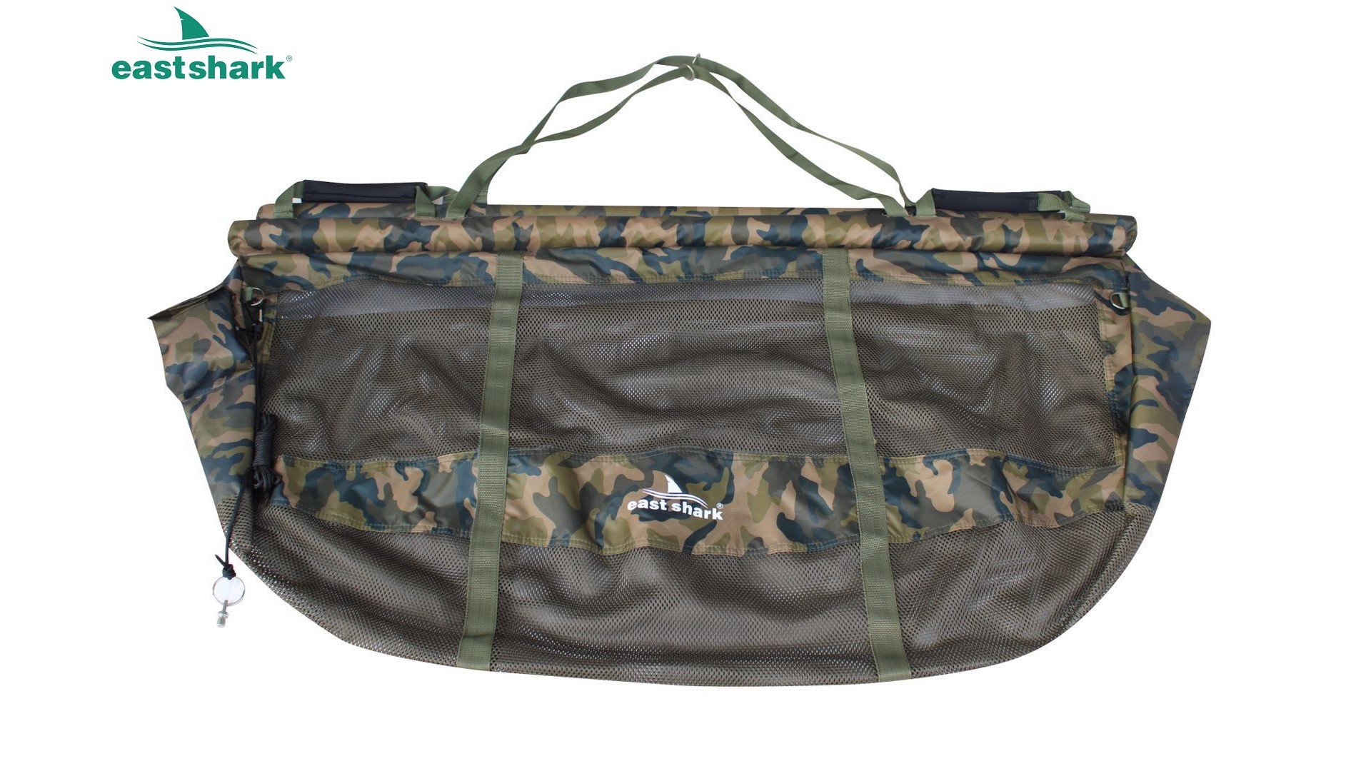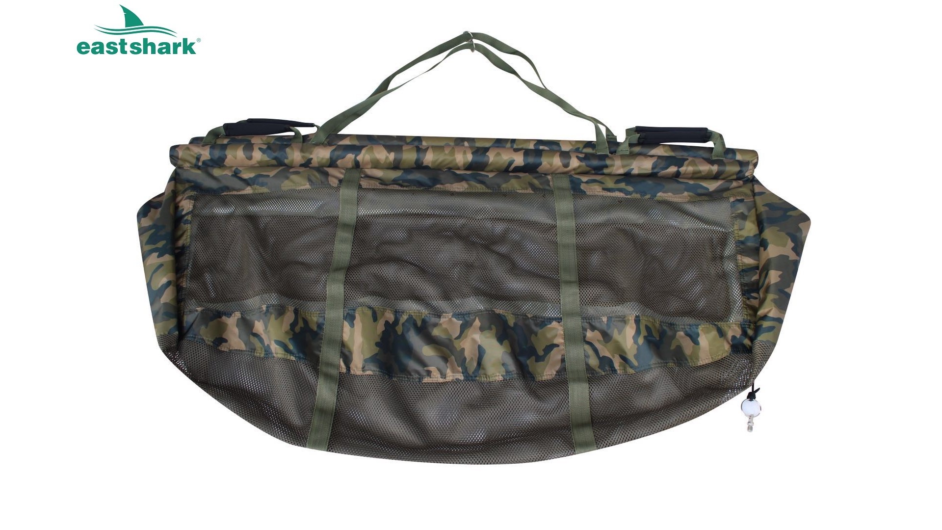 Выполнена из плотного материала (полиэстер 210D) с сетчатыми вставками, по краям имеет надежную молнию, позволяющую застегнуть сумку полностью по кругу и разместить в ней рыбу в воде.