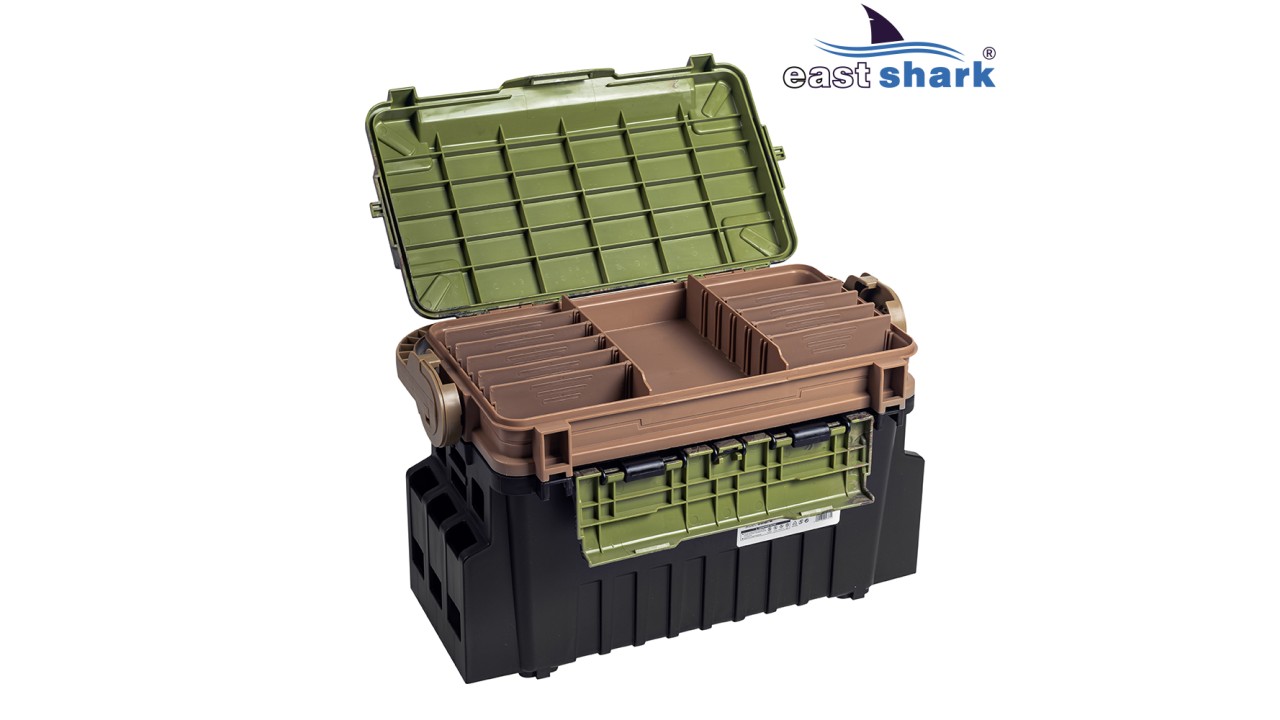 Рыболовный ящик EastShark, вместительный и многофункциональный, позволяет разложить большое количество рыболовных аксессуаров и приманок для рыбной ловли!