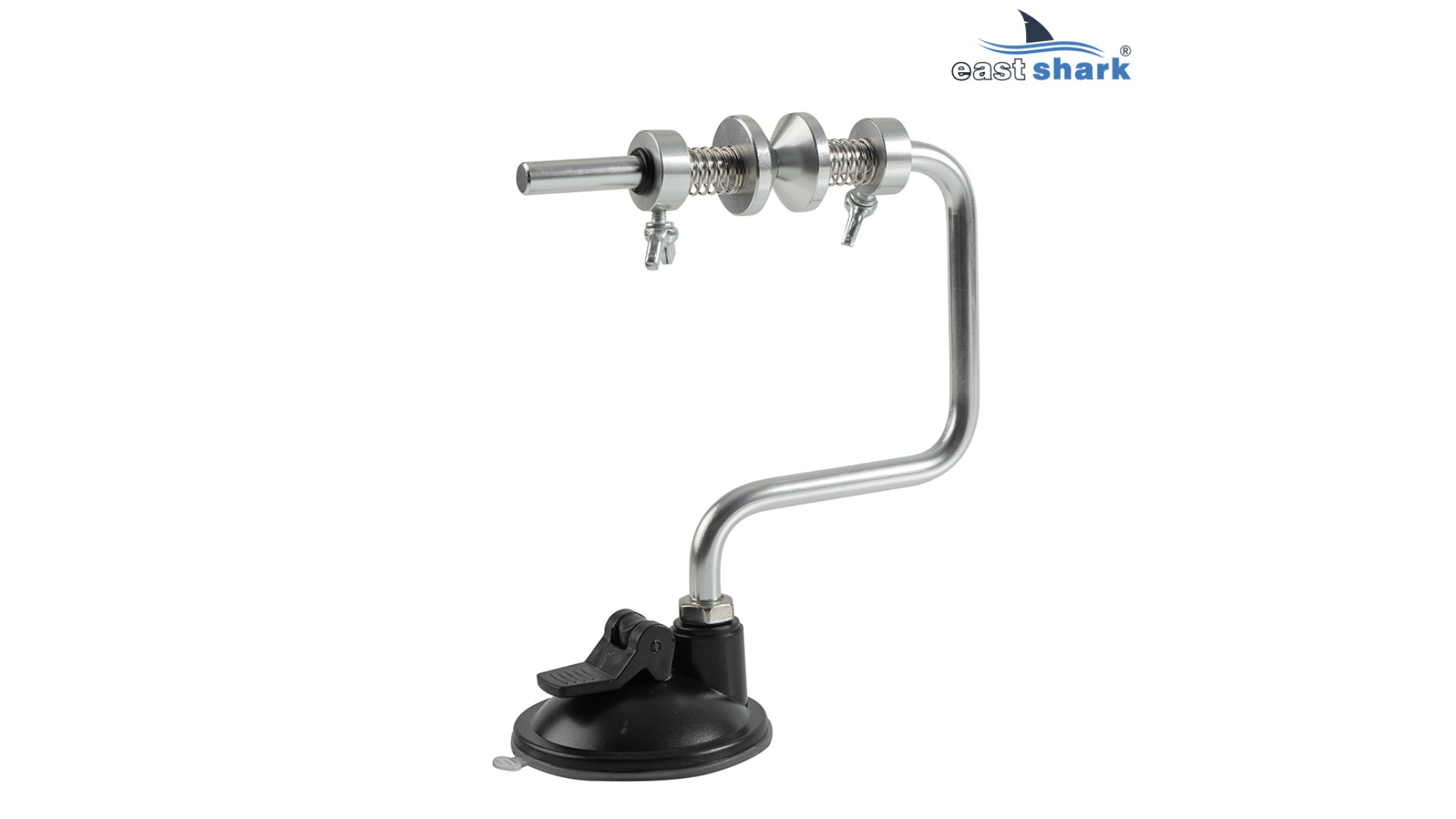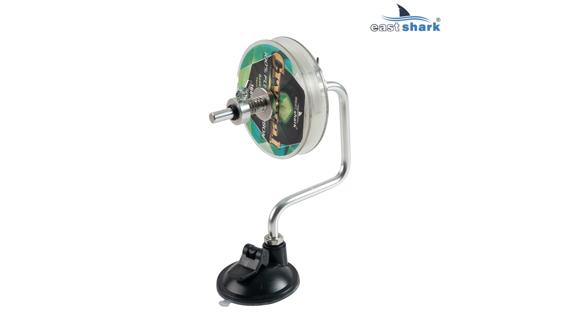 Крепится с помощью присоски. Надежная алюминиевая конструкция, есть регулировка натяжения лески.