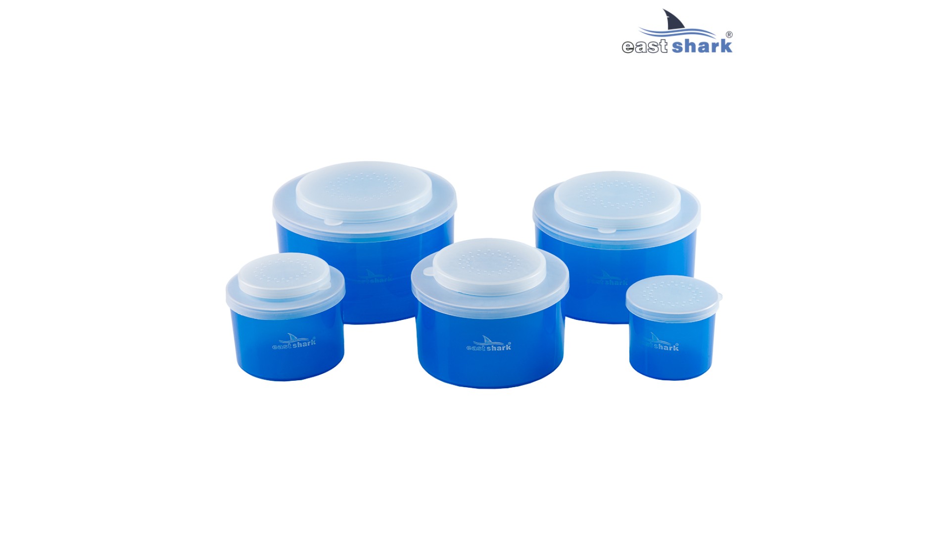 Емкости для наживки EastShark, набор 5 шт, крышки в бортиком и отверстиями для вентиляции.
