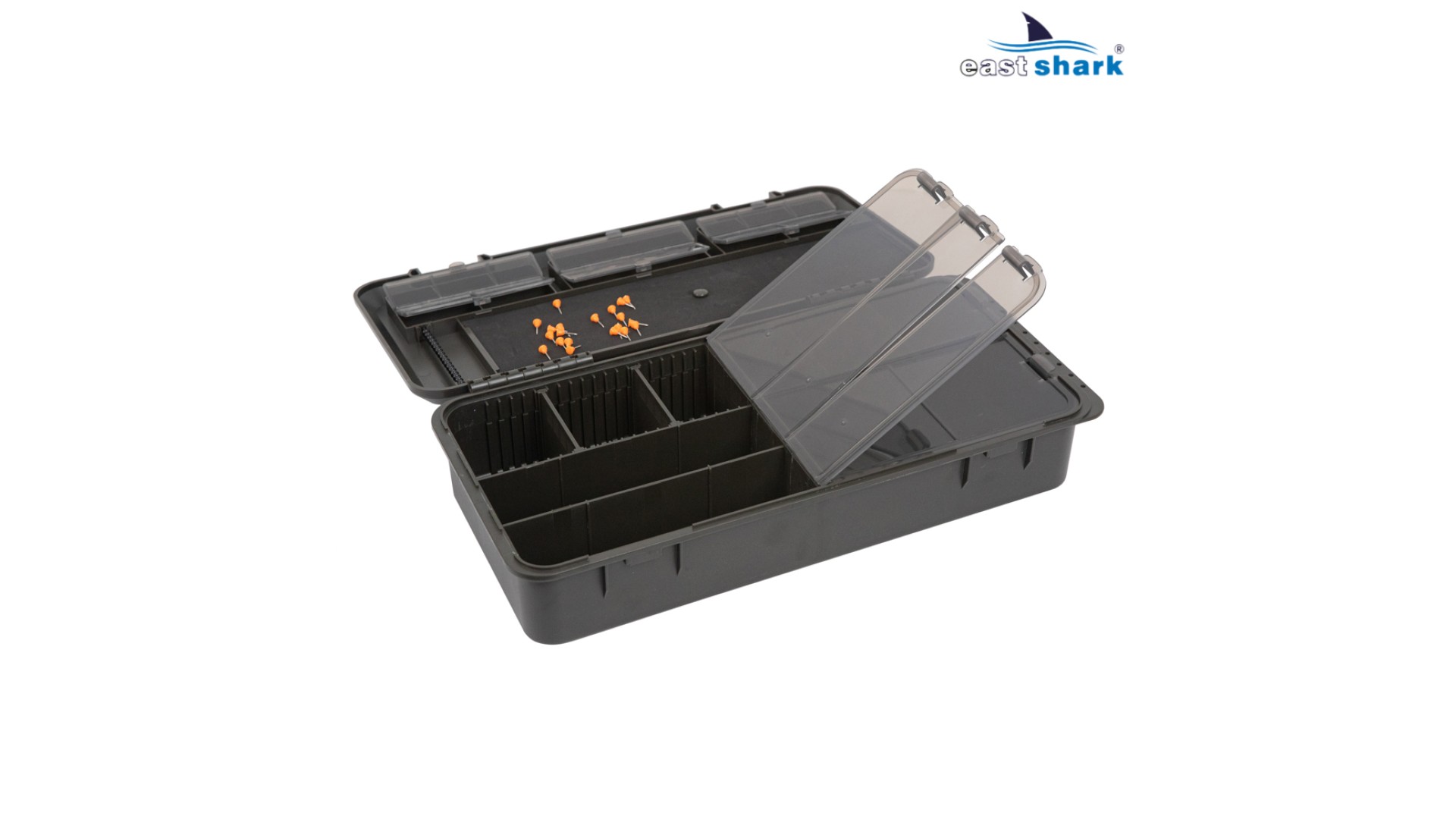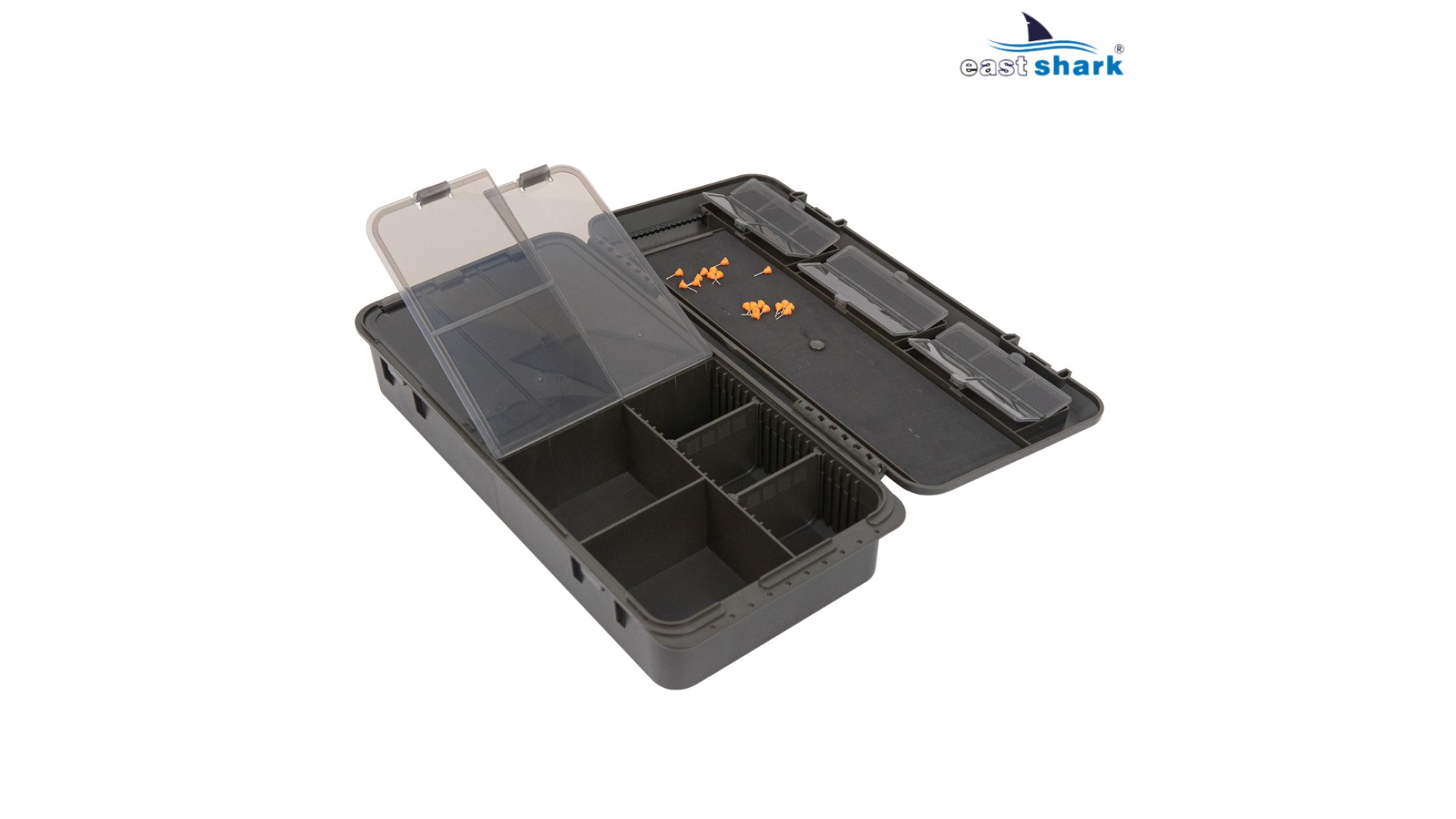 Tackle Box EastShark отлично подходит для хранения готовых поводков, инструментов, поводковых материалов, грузиков, карабинов и многих других аксессуаров и инструментов для изготовления монтажей и оснасток!