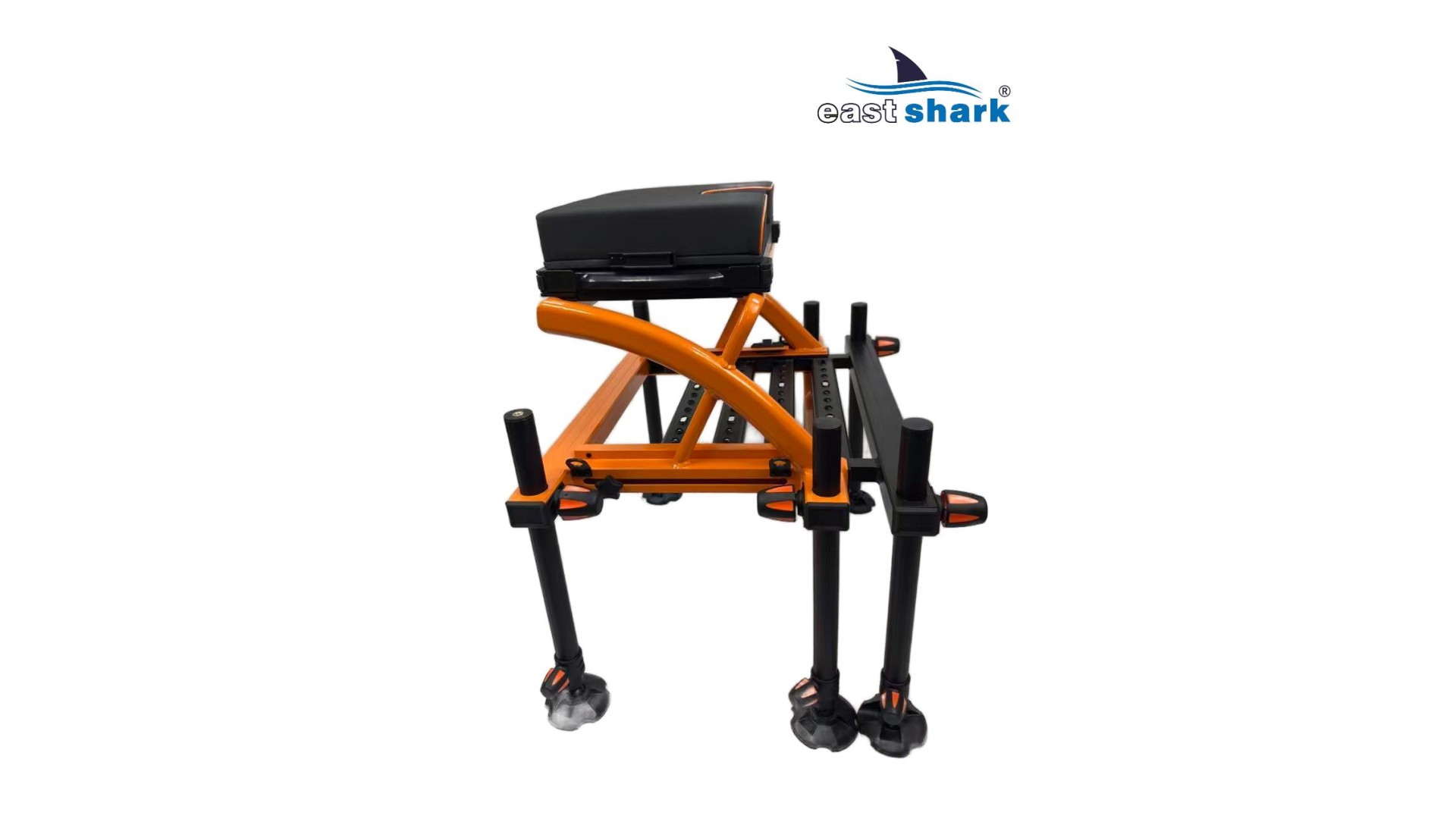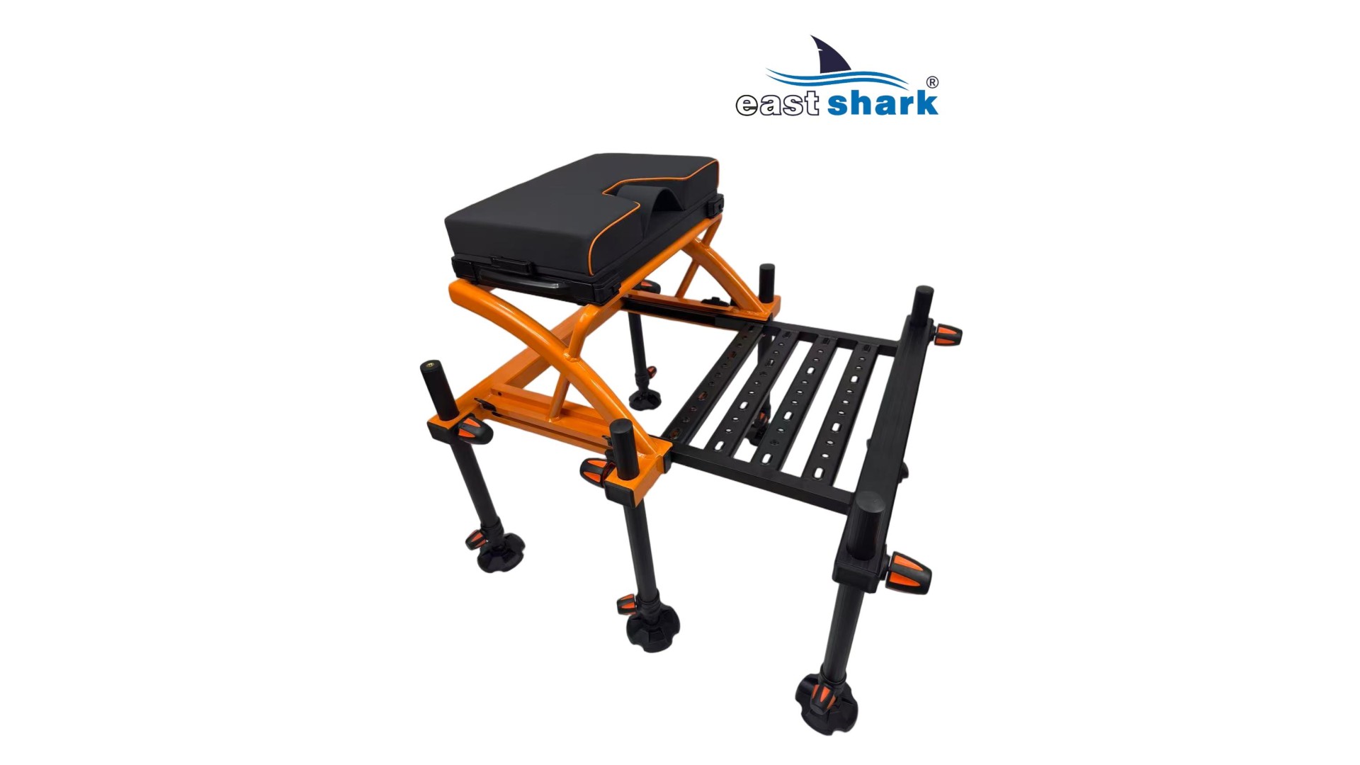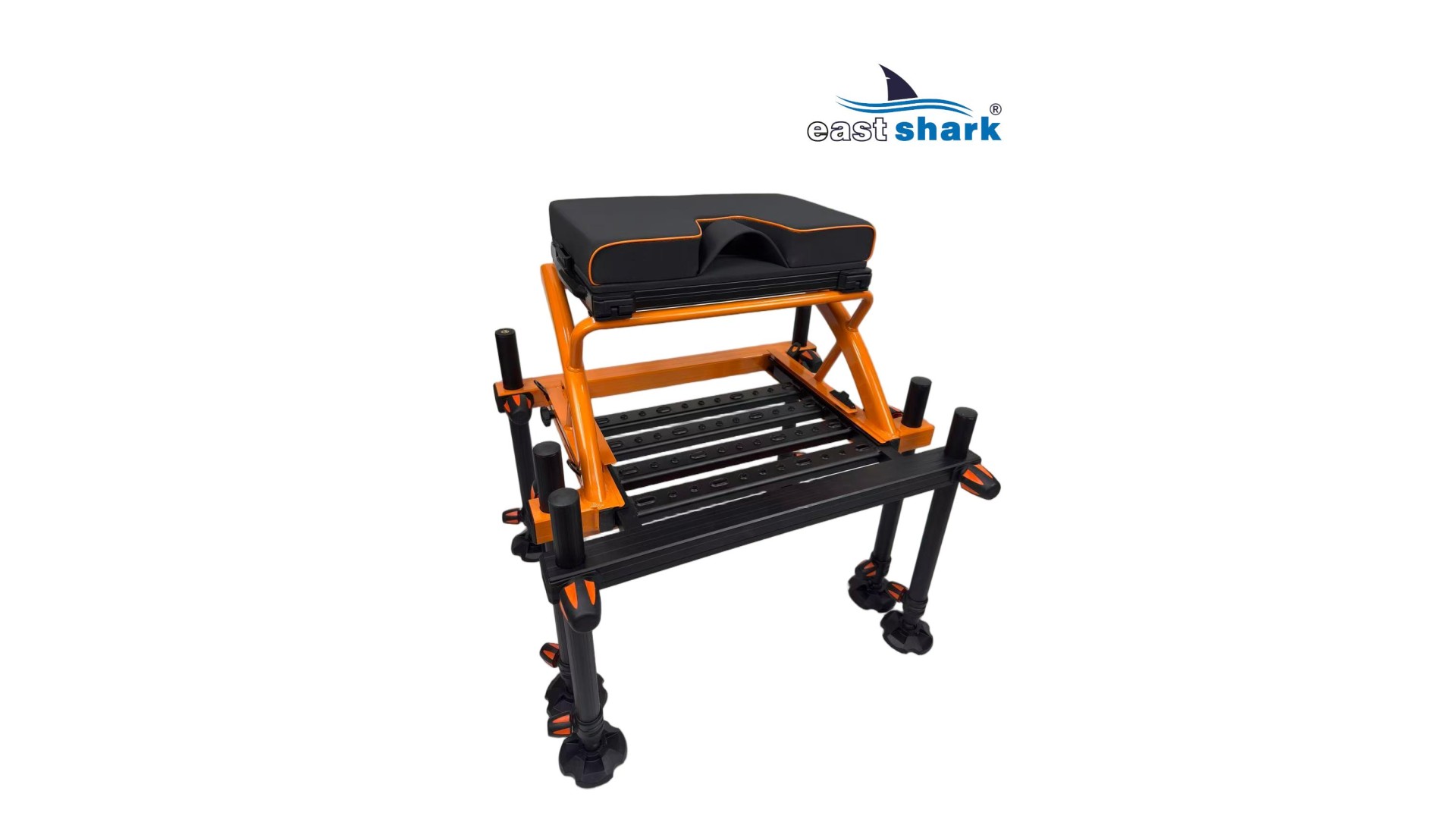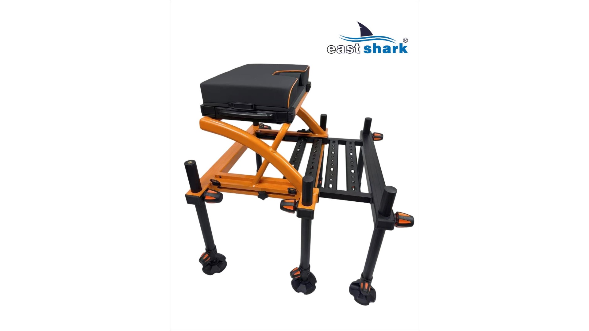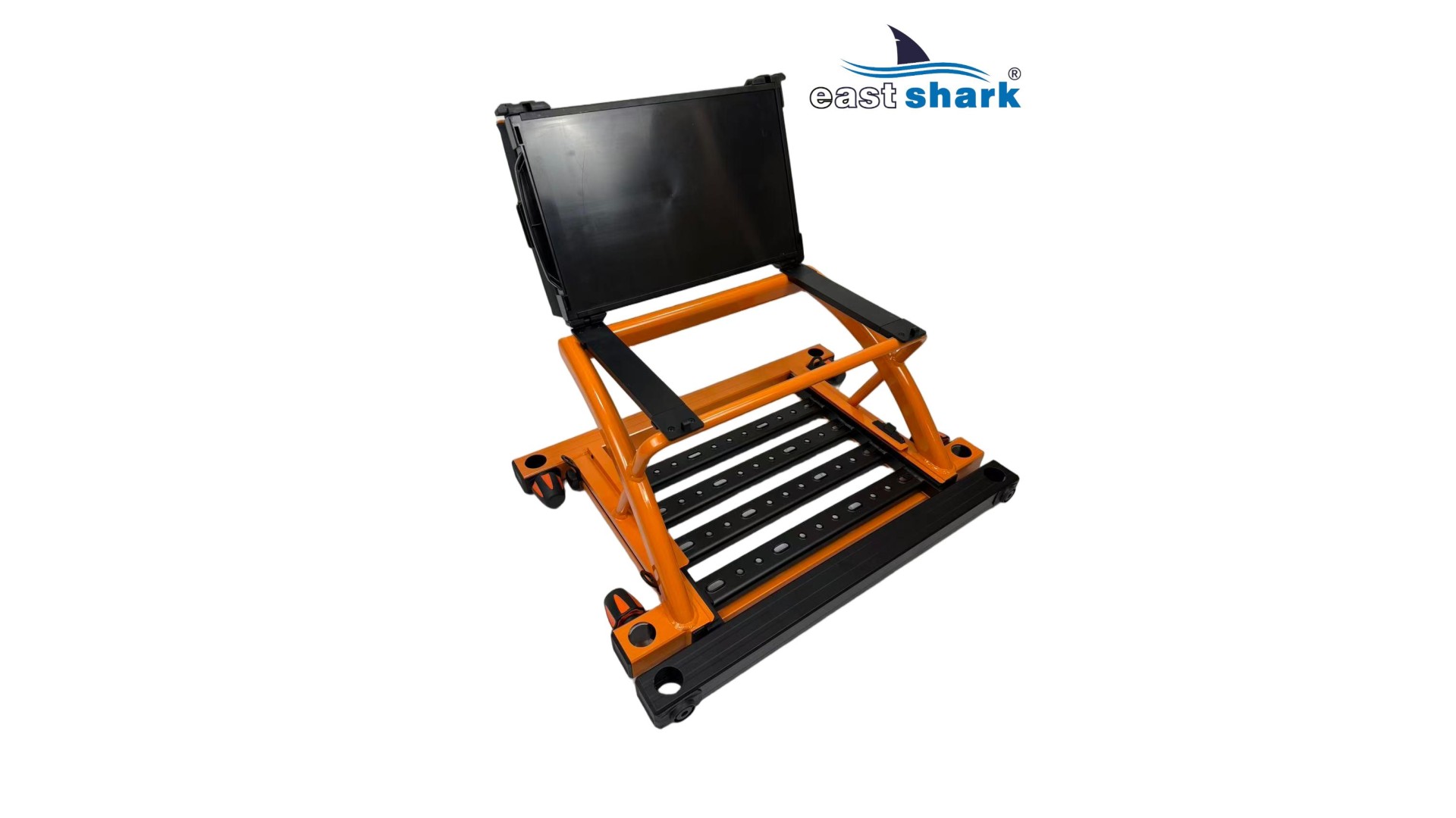 Высококачественная современная, футуристическая, профессиональная платформа с верхней полки известной и уважаемой компании Eastshark. Изготовлен из легкого и сверхпрочного дюралюминия, покрытого неабразивной краской черного и оранжевый цвета. Конструкция площадки основана на закрытых дюралюминиевых профилях
