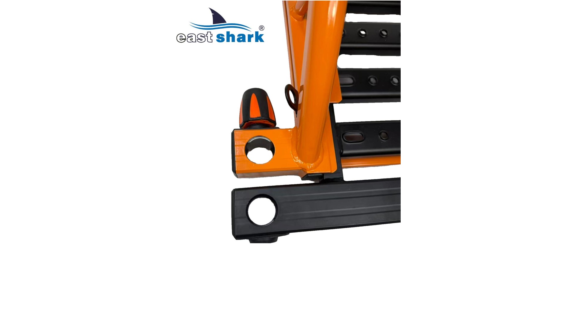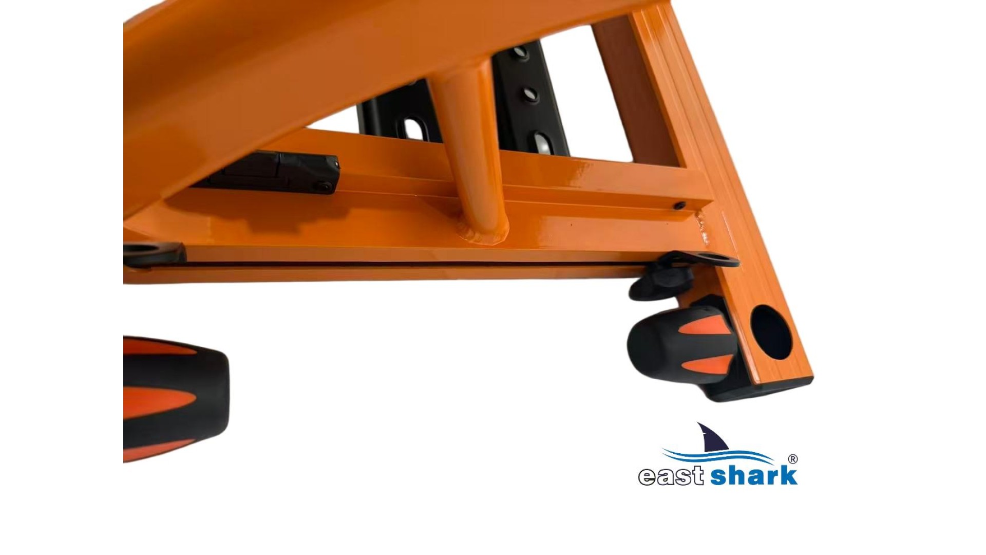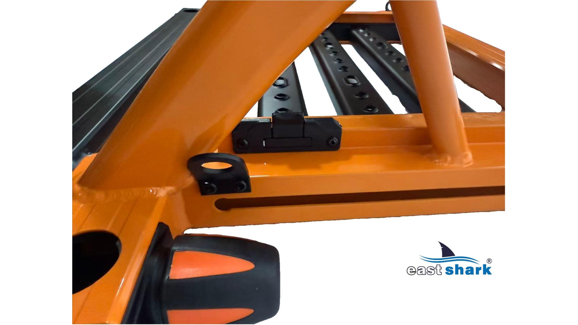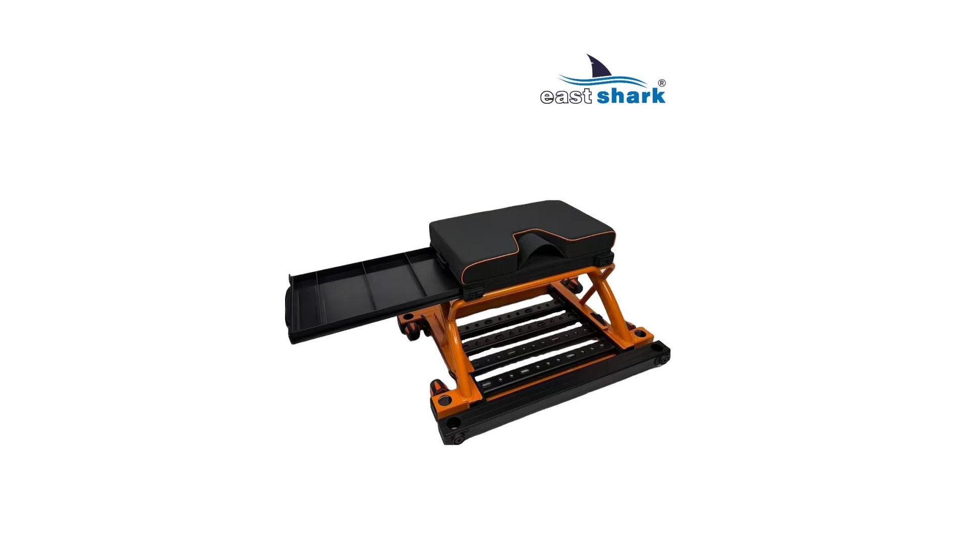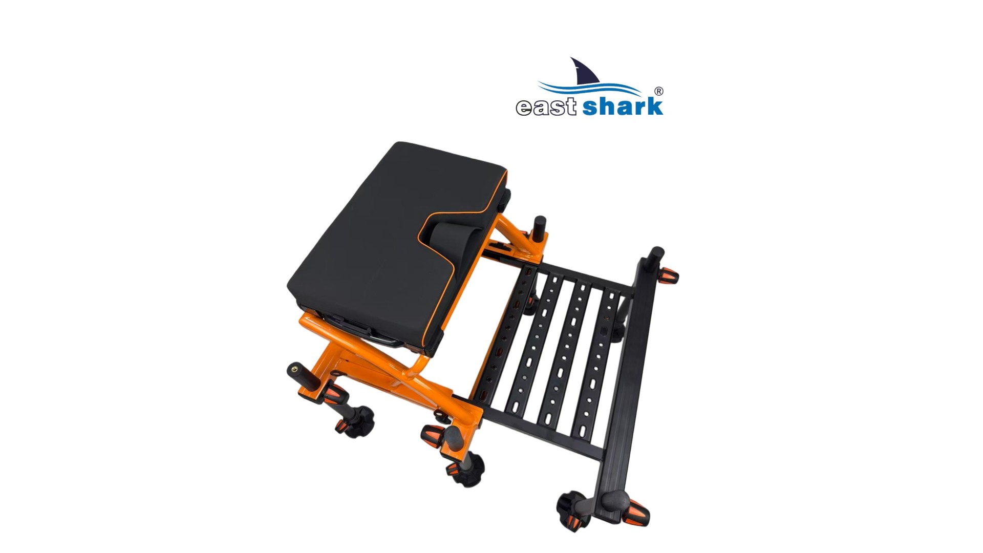 Высококачественная современная, футуристическая, профессиональная платформа с верхней полки известной и уважаемой компании Eastshark. Изготовлен из легкого и сверхпрочного дюралюминия, покрытого неабразивной краской черного и оранжевый цвета. Конструкция площадки основана на закрытых дюралюминиевых профилях