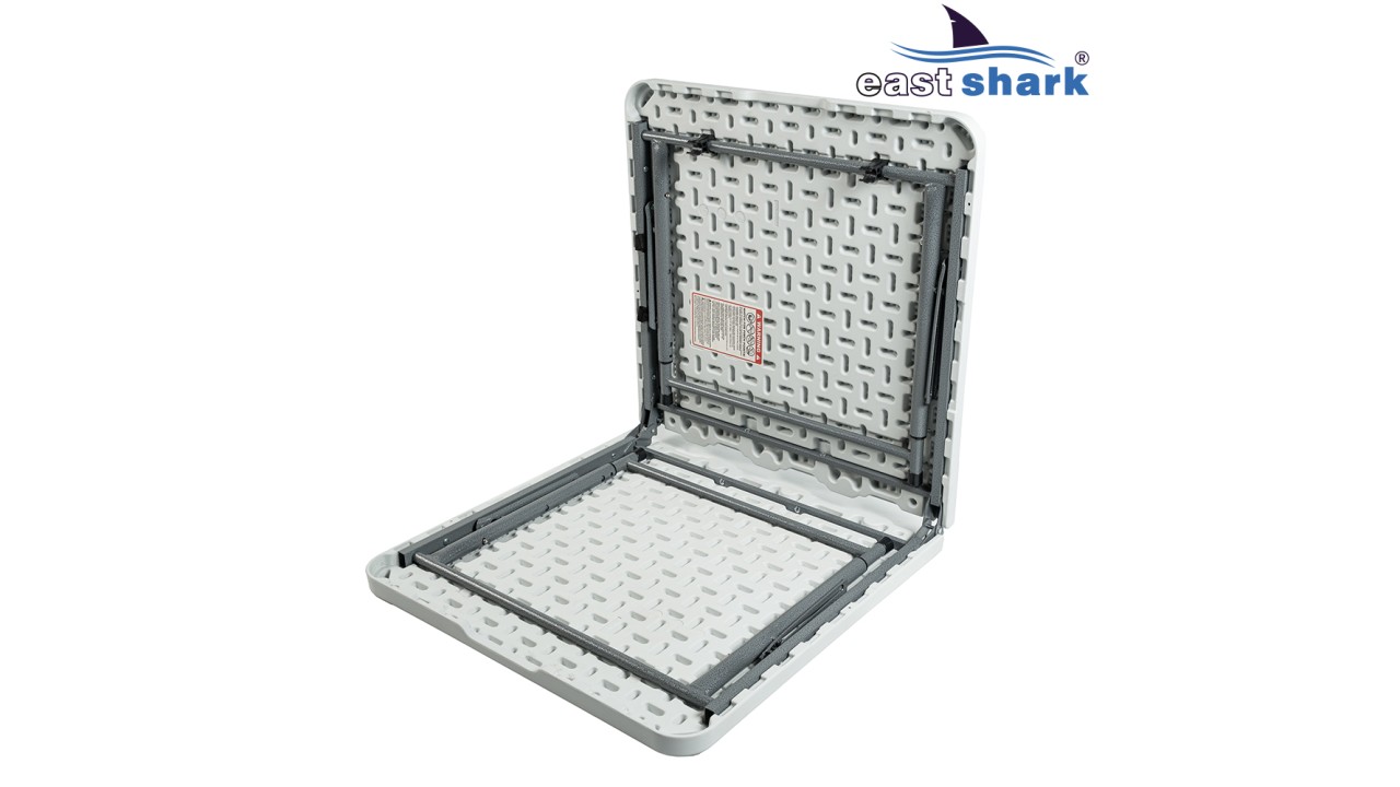 Надежная металлическая конструкция с регулируемыми ногами, толстая пластиковая столешница.