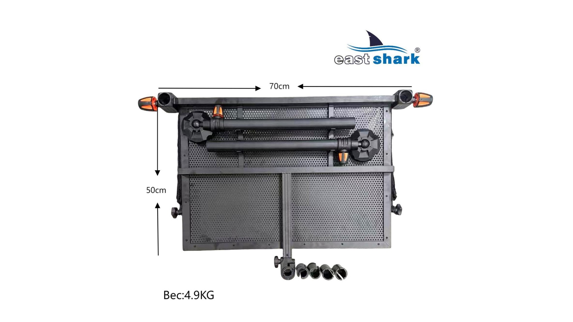 Удобен для размещения мелких рыболовных принадлежностей, имеет бортик для предотвращения скатывания и сваливания.