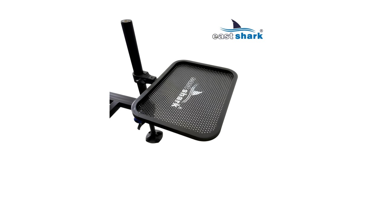 Выполнен из алюминиевого сплава и имеет перфорированную поверхность. Система крепления к ноге на 36 мм (через втулку можно крепить к ноге 25 мм/30ММ) - удобная и надежная, позволяет легко регулировать положение стола.