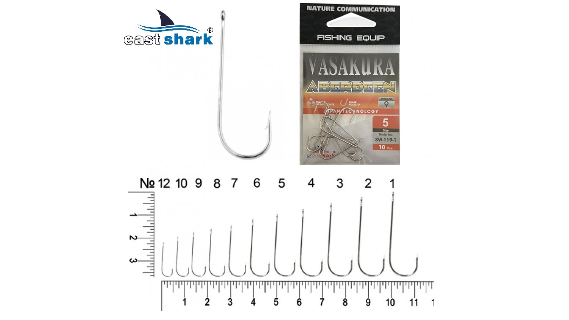 Крючки NEW EastShark Vasakura ABERDEEN № 5 Ni (уп/10 шт)