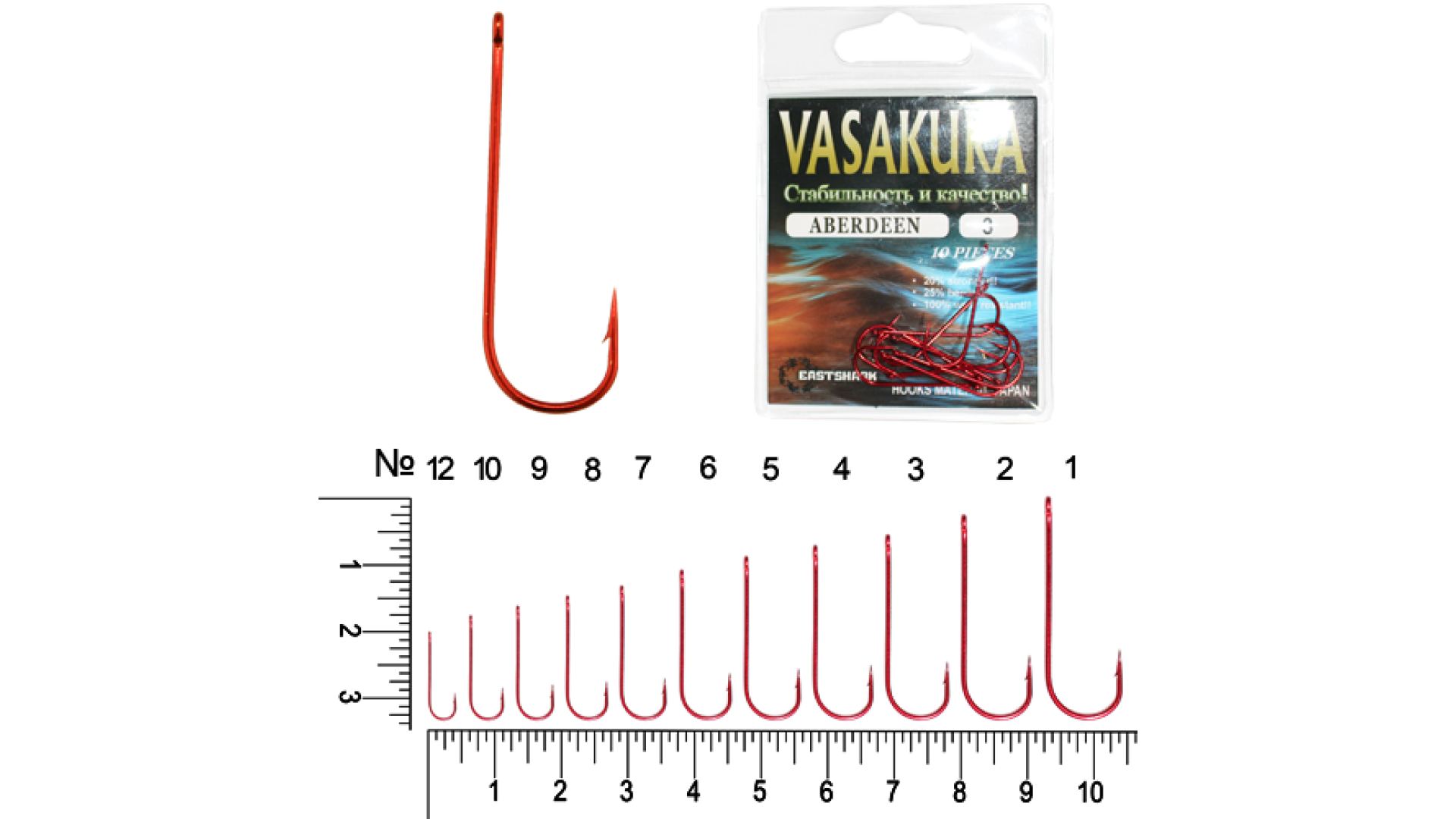 Крючки ABERDEEN Red Vasakura № 9 (уп/10 шт)