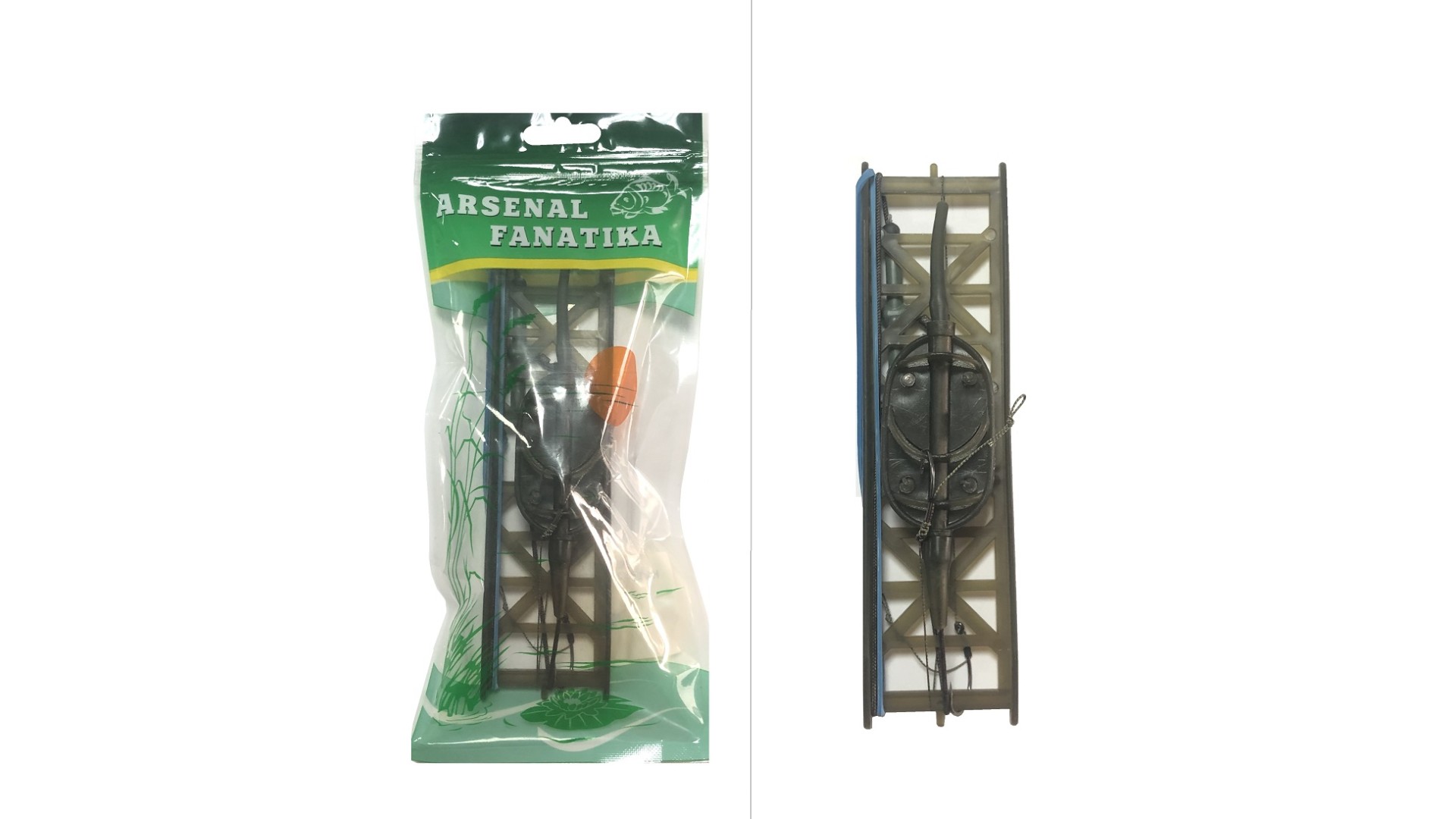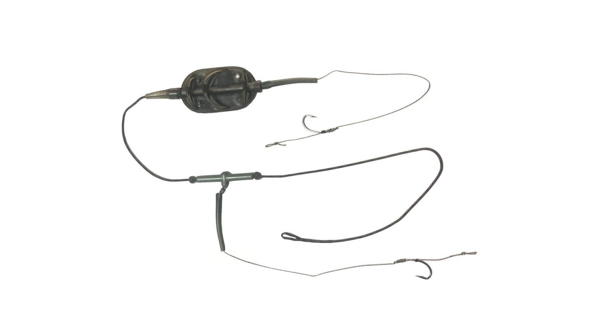 Готовый монтаж с флэт кормушкой и 2 крючками с волосом.