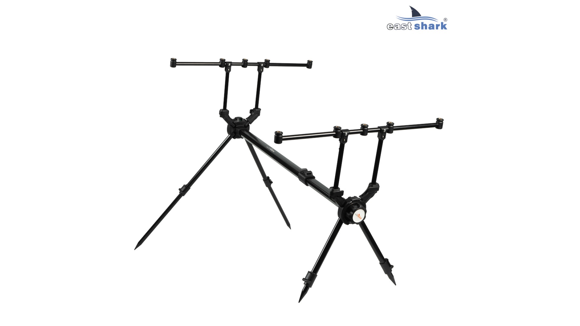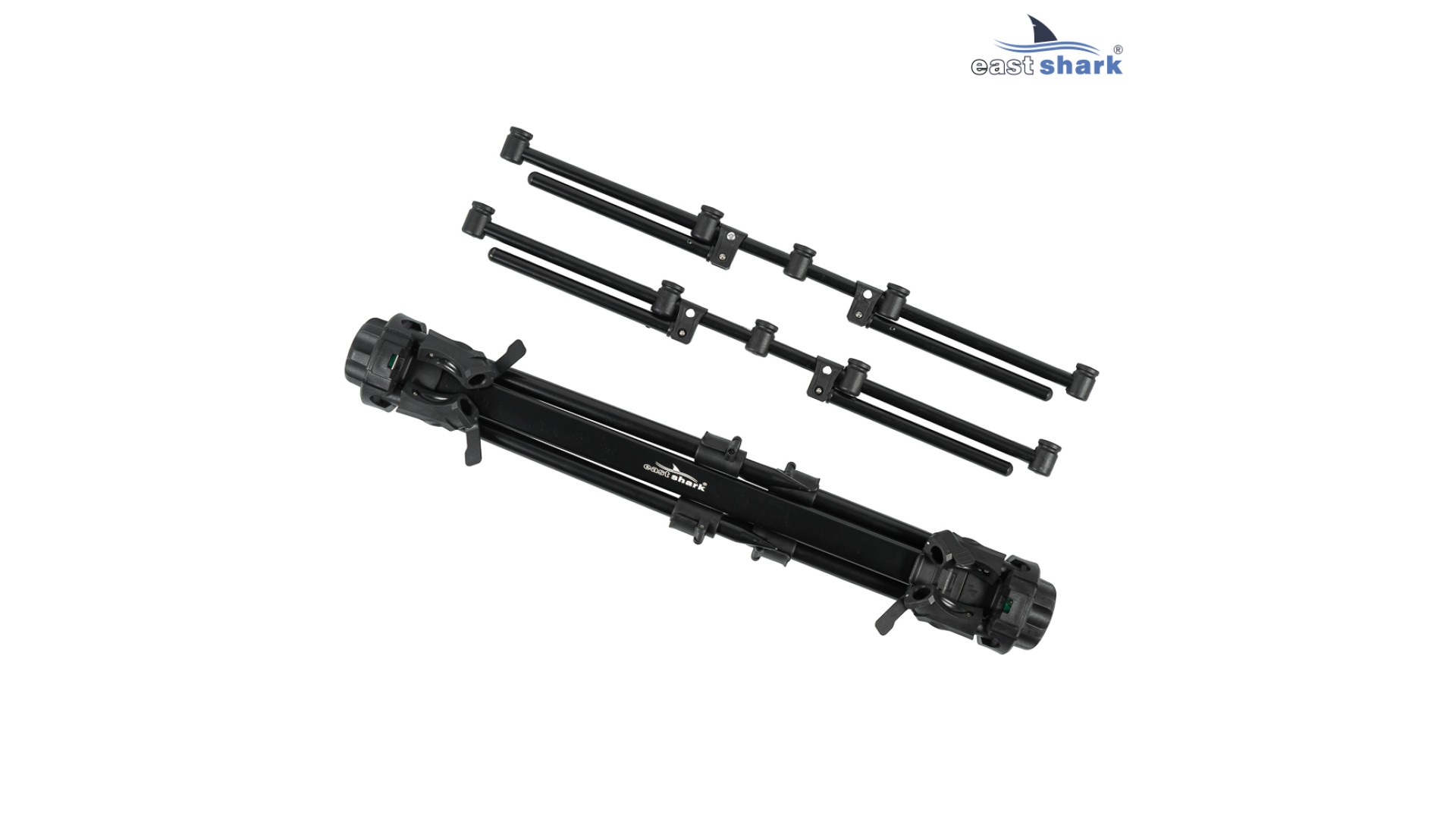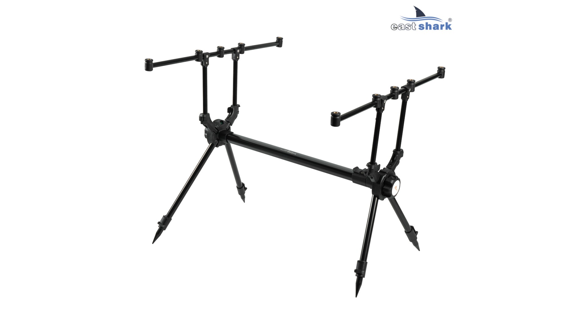 Имеет телескопические ножки с регулировкой длины и угла наклона, что позволяет наклонять/задирать удилища относительно горизонта, а так же, устанавливать на неровной поверхности.