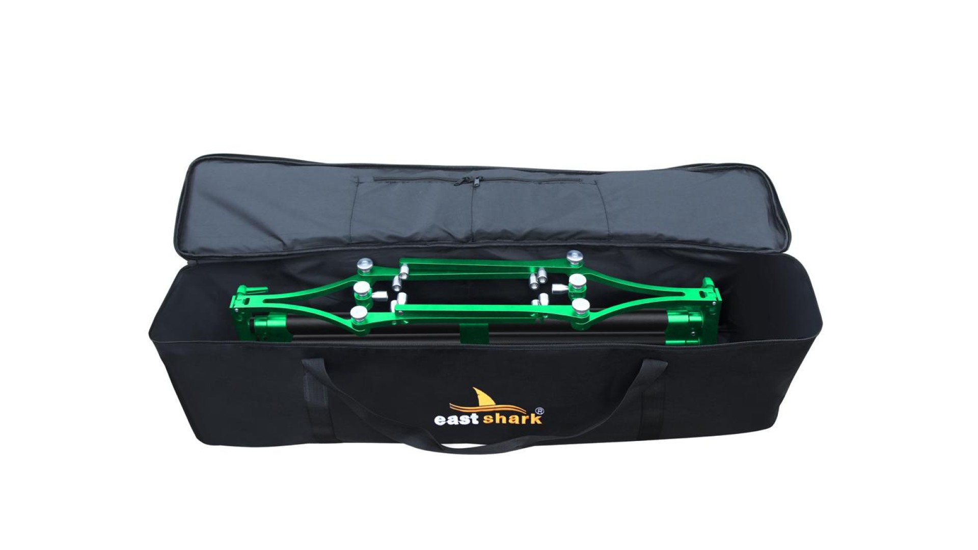 В комплекте плотный чехол для транспортировки размером 108*21*28 см с доп. карманами для мелочевки.