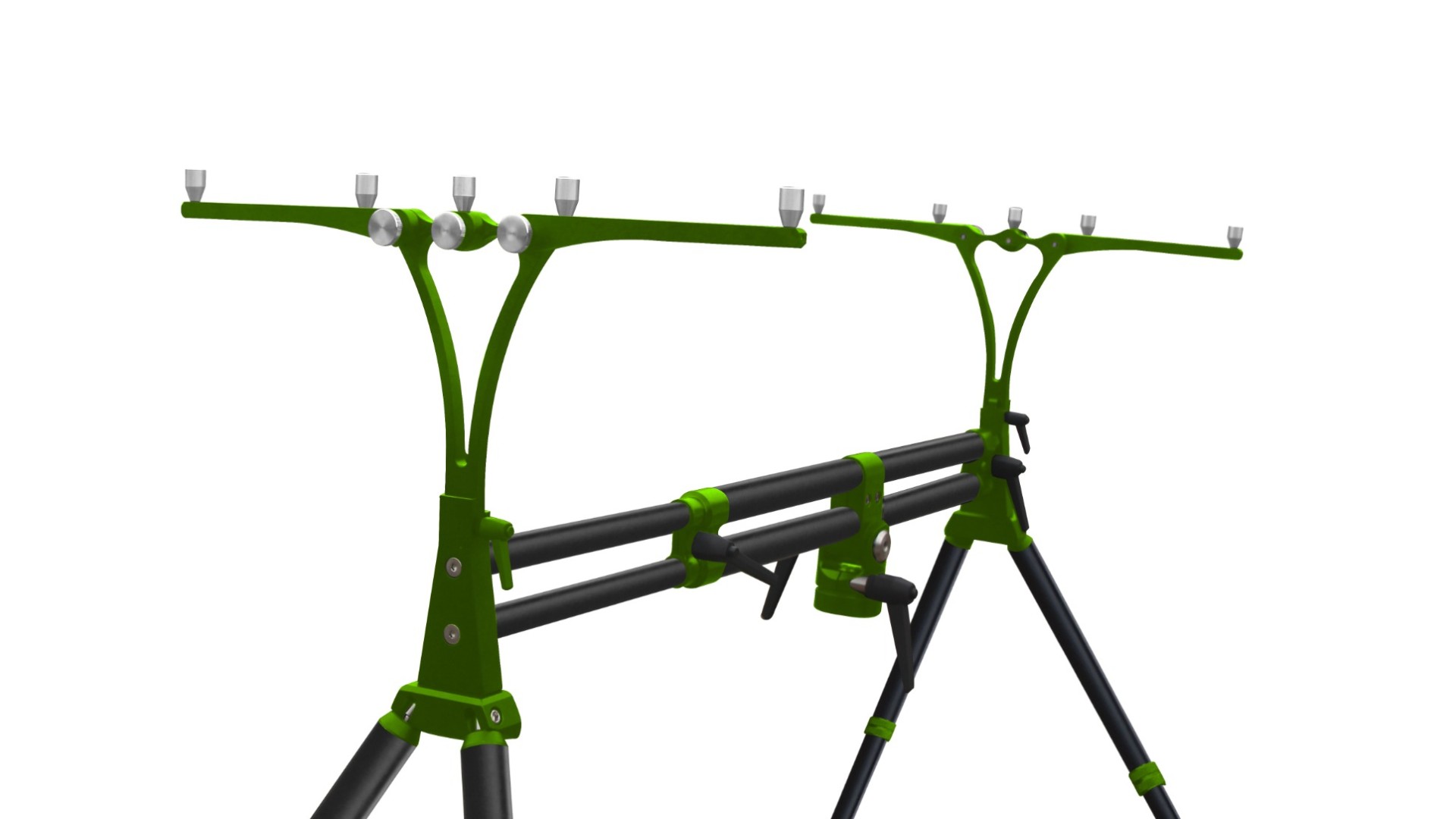 Род-под, так же, имеет возможность вращения на 360 градусов, что позволяет в любой момент ловли отвернуть удилища в любую сторону, освободив пространство для вываживания и подсачивания рыбы.