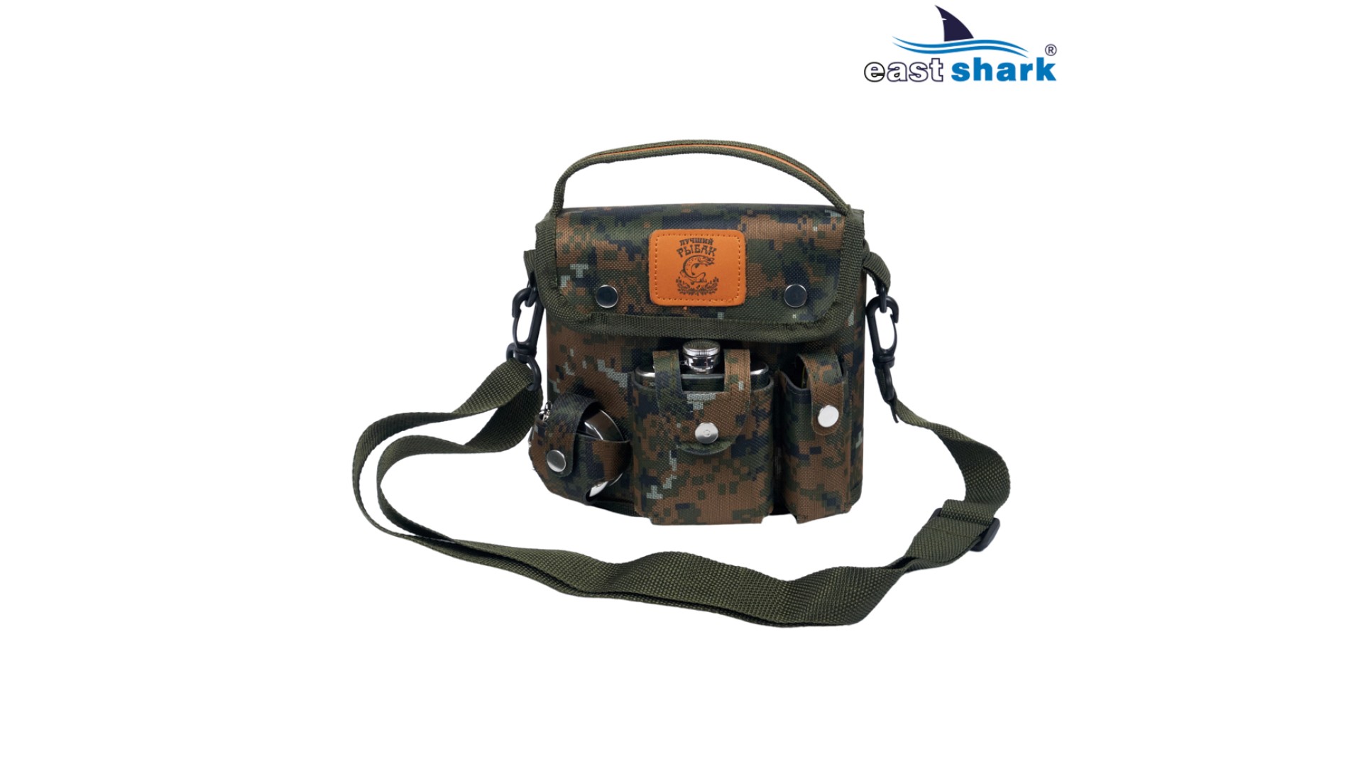 Комплектуется удобным чехлом с плечевым ремнем, складной рюмкой, маленькой фляжкой и мультитулом.