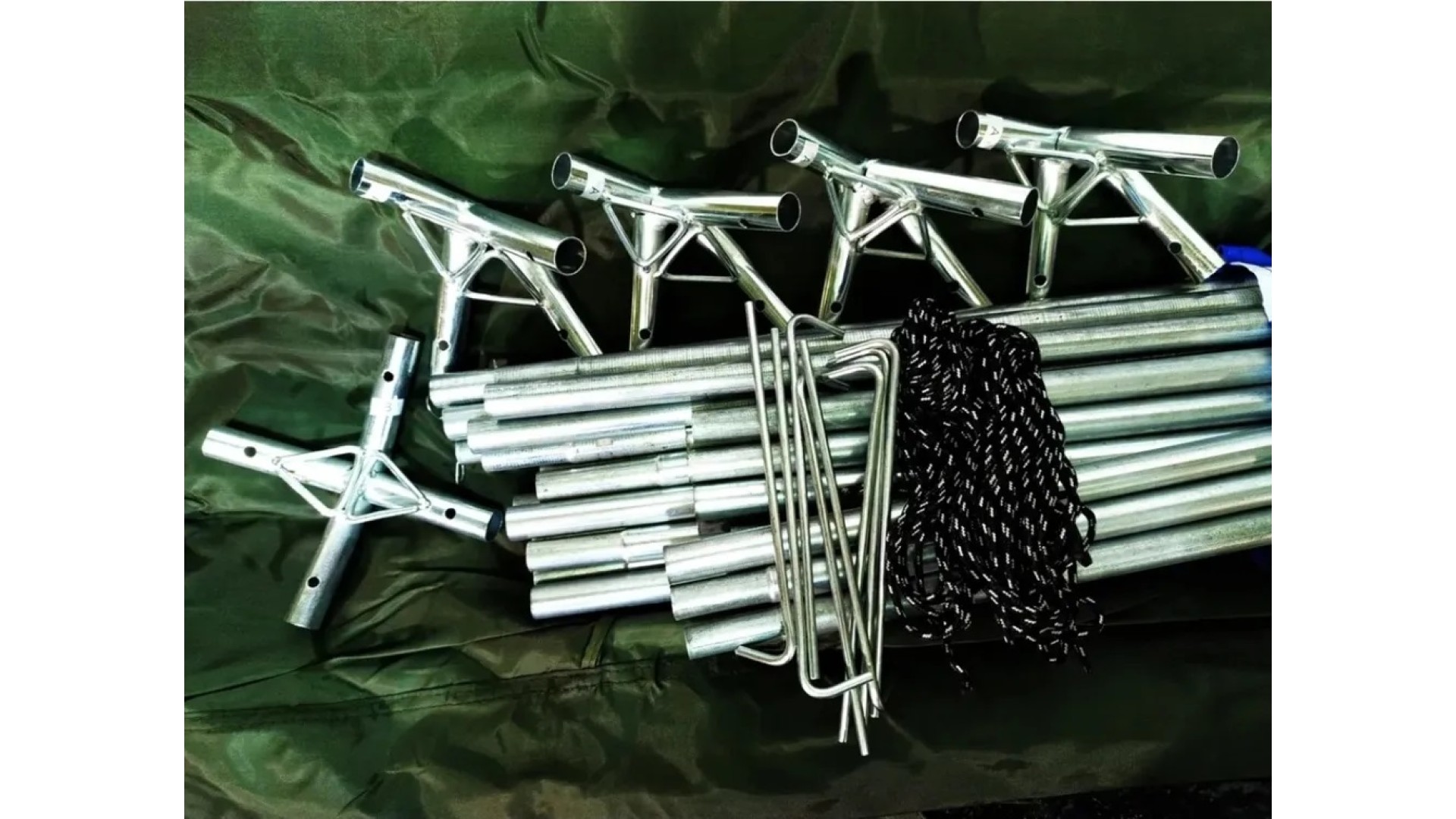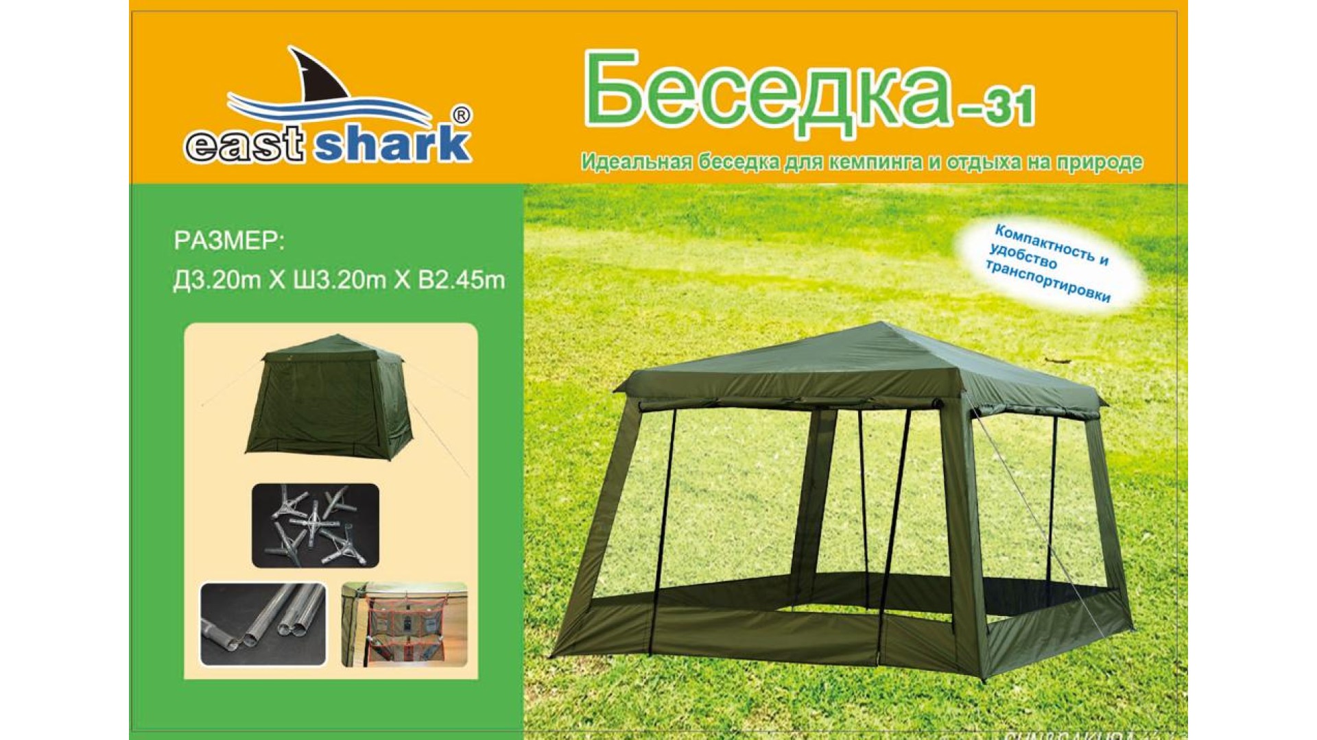 Комплект шатра в собранном виде умещается в 1 сумку-переноску.