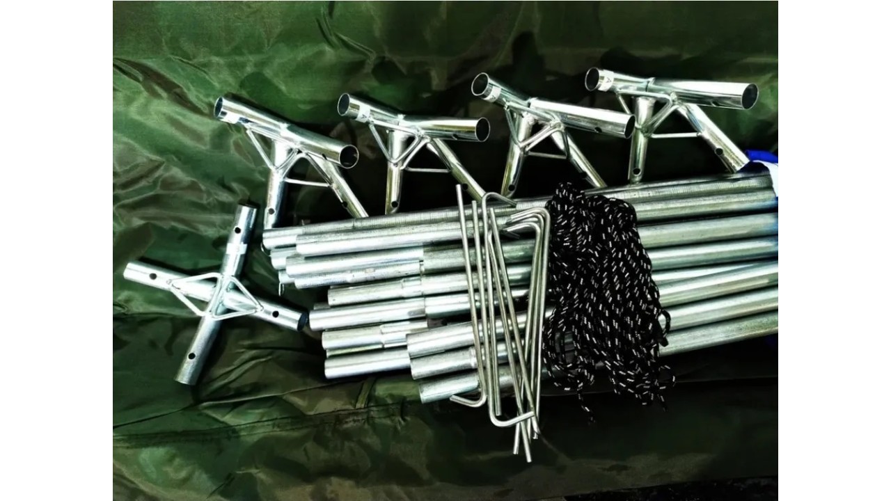 Прочный каркас шатра изготовлен из стали, поэтому вся конструкция устойчива к ветру. Все части каркаса надежно фиксируются между собой.