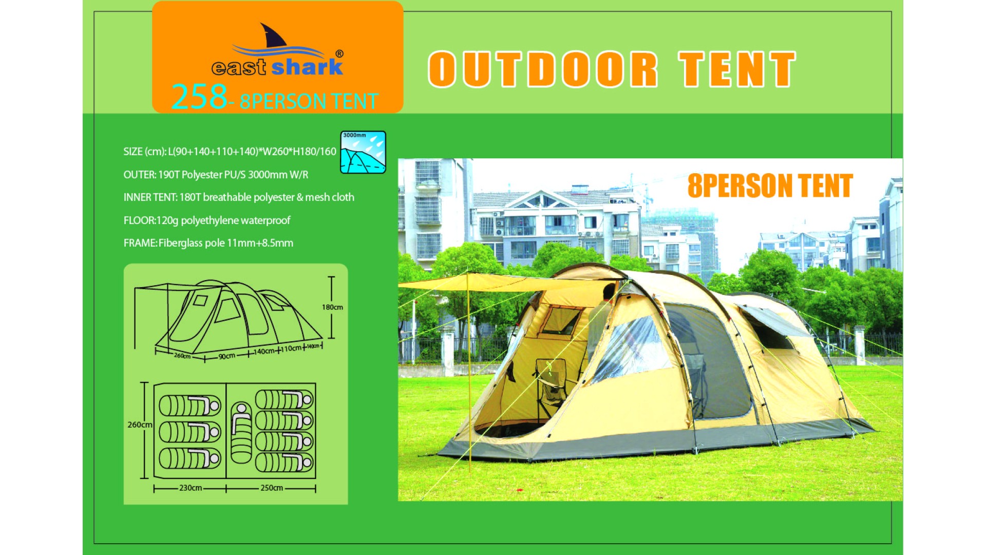 Ткань тента: 190T POLYESTER (полиэстер) PU3000MM B/H