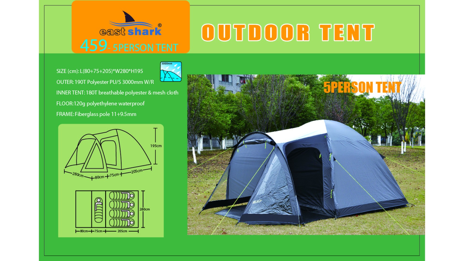 Ткань тента: 190T POLYESTER (полиэстер) PU3000MM B/H