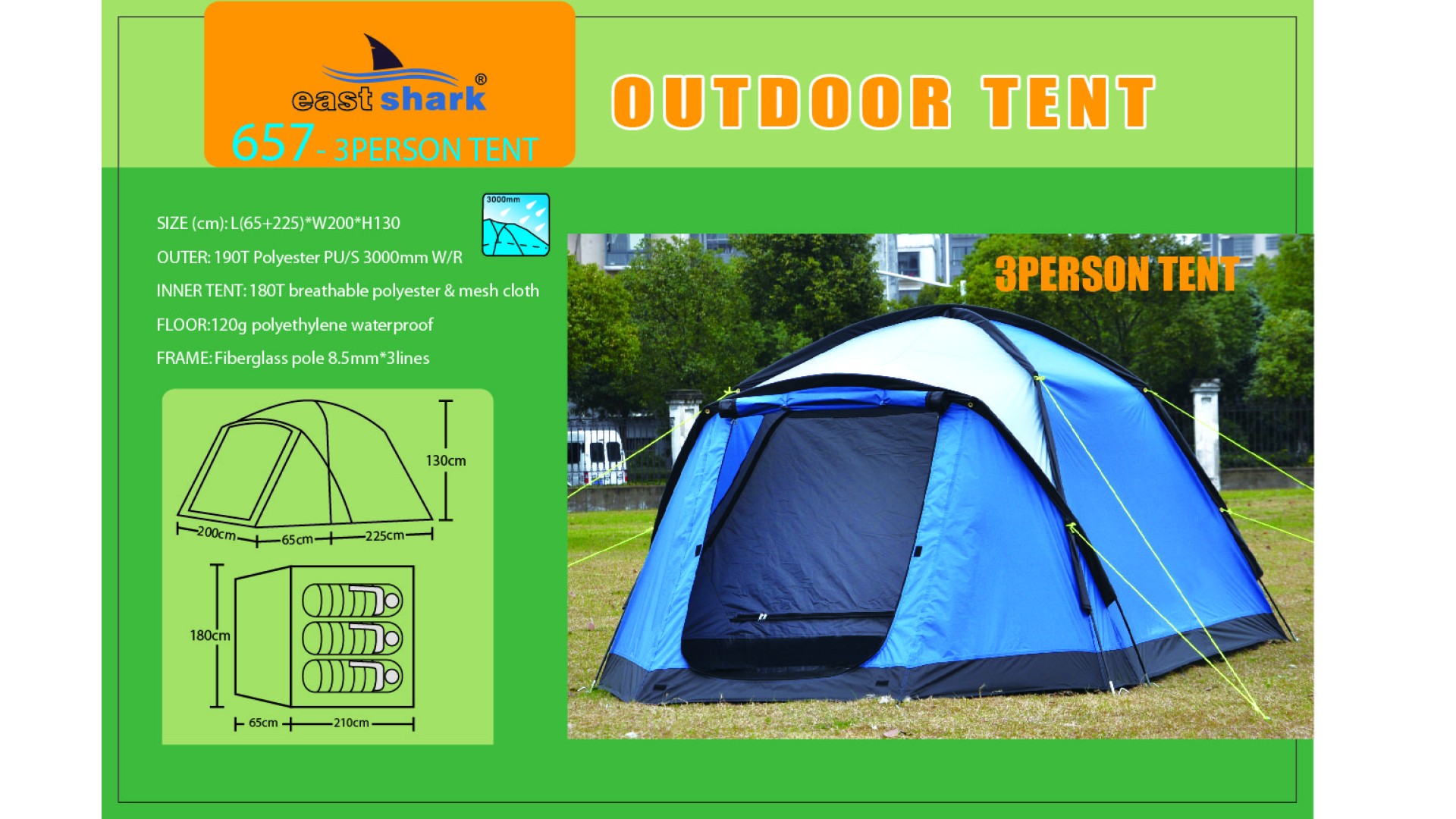 Ткань тента: 190T POLYESTER (полиэстер) PU3000MM B/H