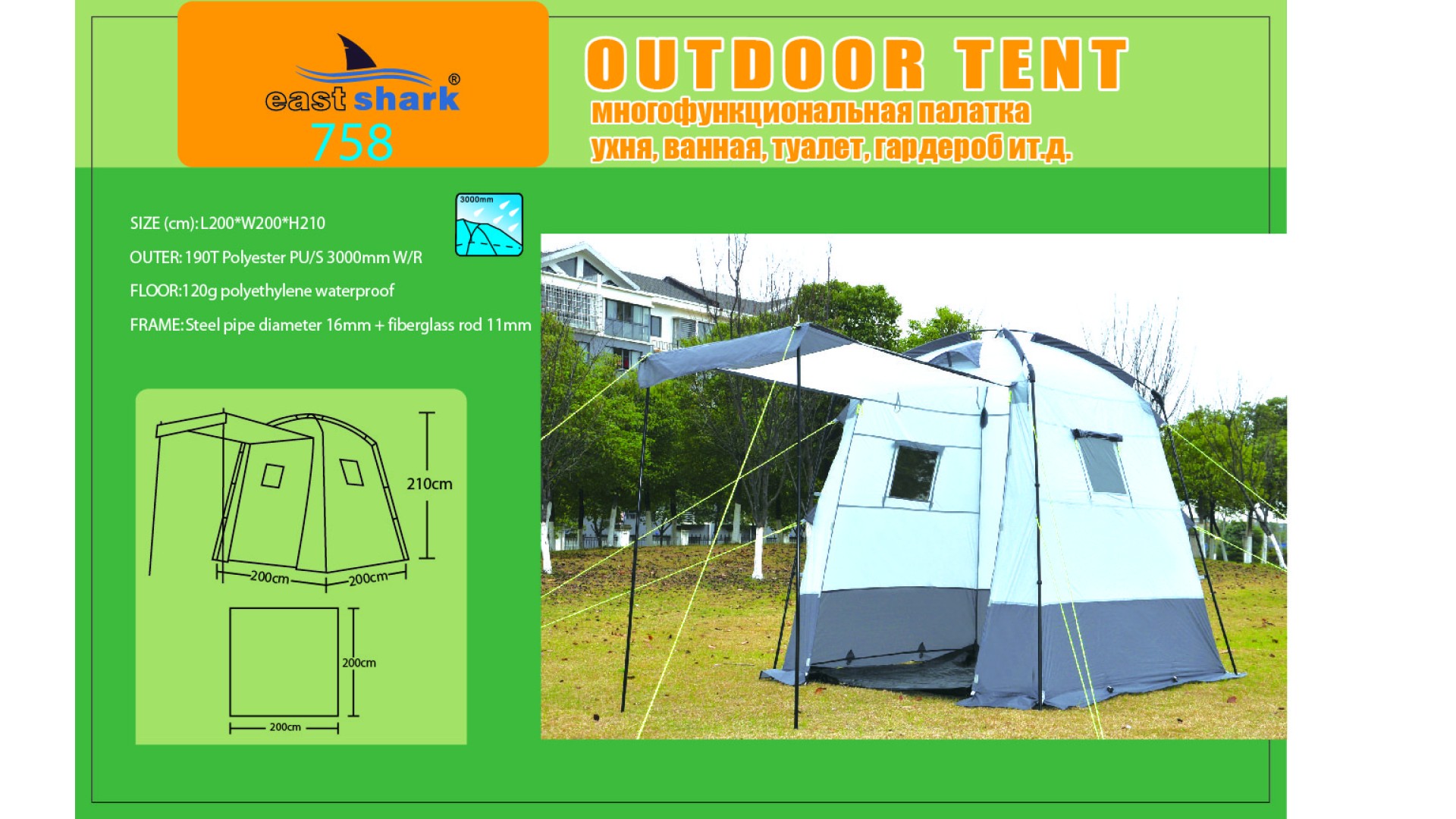 Размер: длина 200 см, ширина 200 см, высота 210 см.