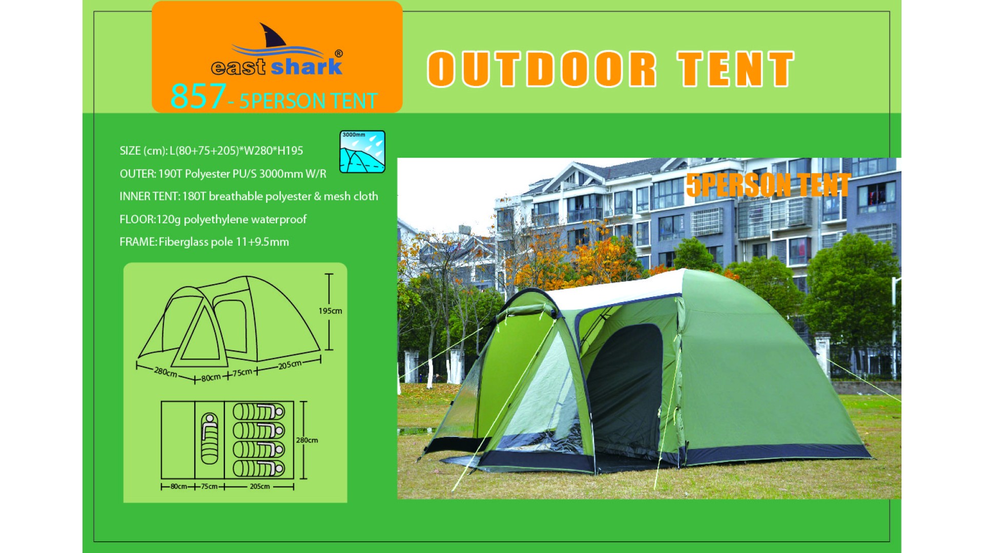Ткань тента: 190T POLYESTER (полиэстер) PU3000MM B/H