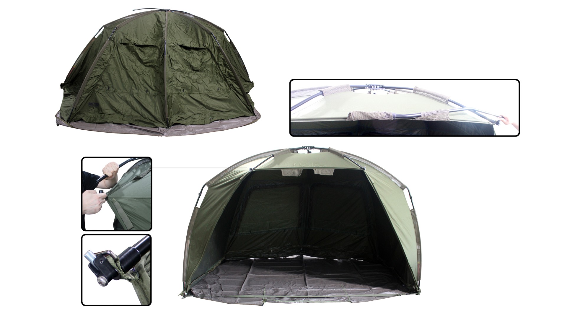Особенности: большие окна с антимоскитными сетками, непромокаемый пол на молнии, быстрая сборка и разборка, высокая ветроустойчивость без растяжек, съемная фасадная часть
