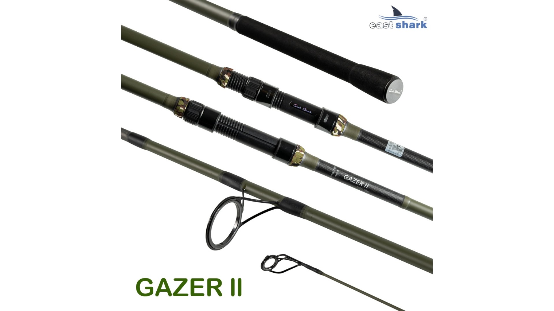 Серия карповых удилищ Gazer 2 от EastShark включает в себя рабочие бланки с тестом 3,75LB в длине 3.6 и 3.9 м, мощные бланки с маркировкой SPOD, с тестом 5,0 LB для прикармливания или ловли на течении с большими весами грузов длиной 3.6 и 3.9 м. А так же, Gazer 2 представлен в двух и трёх частном исполнении.