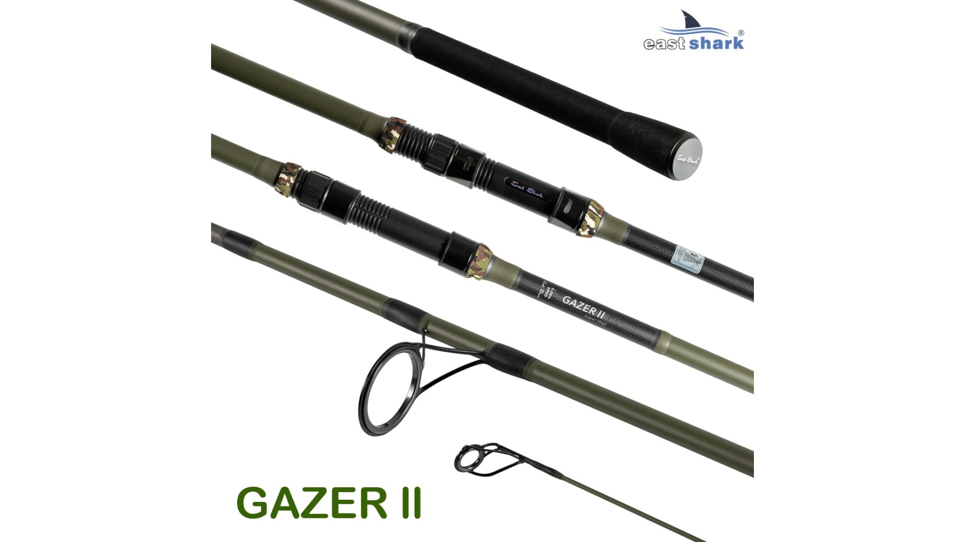 Серия карповых удилищ Gazer 2 от EastShark включает в себя рабочие бланки с тестом 3,75LB в длине 3.6 и 3.9 м, мощные бланки с маркировкой SPOD, с тестом 5,0 LB для прикармливания или ловли на течении с большими весами грузов длиной 3.6 и 3.9 м. А так же, Gazer 2 представлен в двух и трёх частном исполнении.